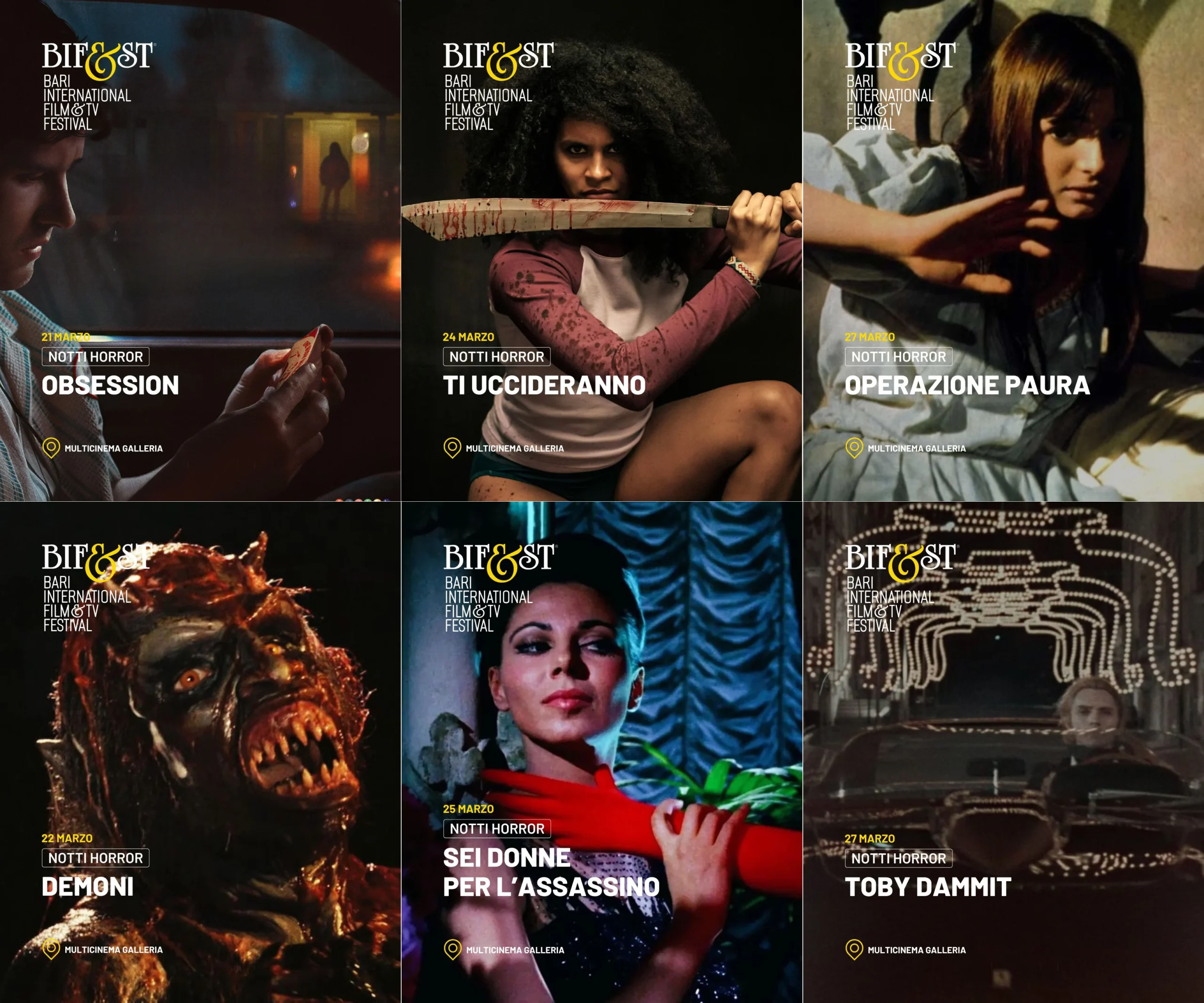 Ad arricchire il programma delle Notti Horror un omaggio dedicato a Mario e Lamberto Bava, padre e figlio che hanno segnato la storia del cinema horror italiano: Demoni (domenica 22 marzo ore 21), Sei donne per l’assassino (mercoledì 25 marzo ore 21), film che ha ispirato cineasti come Martin Scorsese, Dario Argento e Quentin Tarantino, e il capolavoro Operazione paura (venerdì 27 marzo ore 21), seguito da Toby Dammit, episodio diretto da Federico Fellini per il film collettivo Tre passi nel delirio.